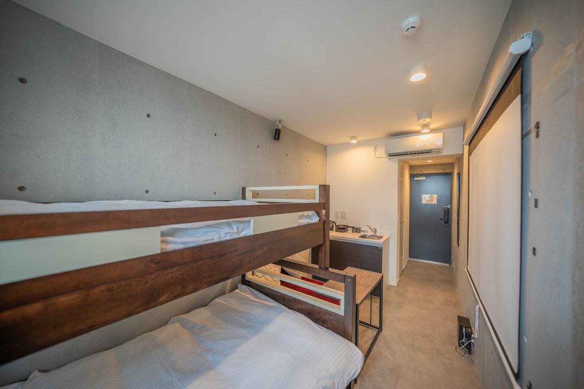 Posebna dječja soba u četvrti „Sunrise” u Tokiju, Bayshoreu i Yurikamomeu, gdje djeca mogu biti glavni likovi. Krevet na sprat ima tobogan i ljuljašku, a ispod je skrivena „tajna baza” (uživat ćete otkrivajući šta je unutra kada dođete ovdje!).Soba je savršena za porodice i porodična putovanja. Dnevni boravak ima veliki TV i mekanu sofu, tako da se možete opustiti nakon cjelodnevnog razgledanja. Prostor za blagovanje je opremljen mini kuhinjom, tako da možete kuhati jednostavne obroke. Dobro je opremljen za dugoročne boravke i grupna putovanja. Nalazi se na dobroj lokaciji s jednostavnim pristupom Tokijskom zaljevu i Duginom mostu, a pogodan je i za razgledanje Hamamatsucha, Ginze, Odaibe itd. Unutrašnjost, gdje su toplina drveta i nježnoplave zidove u harmoniji, udobna je kao kafić. Ovo je smještaj u Hinodeu namijenjen porodicama koji brzo dobija na popularnosti kao „soba u kojoj se možete igrati na krevetu na sprat s toboganom” i „hotel s tajnom bazom”. Uživajte u posebnom vremenu koje kombinuje uzbudljive karakteristike za djecu s opuštajućim prostorom za odrasle.