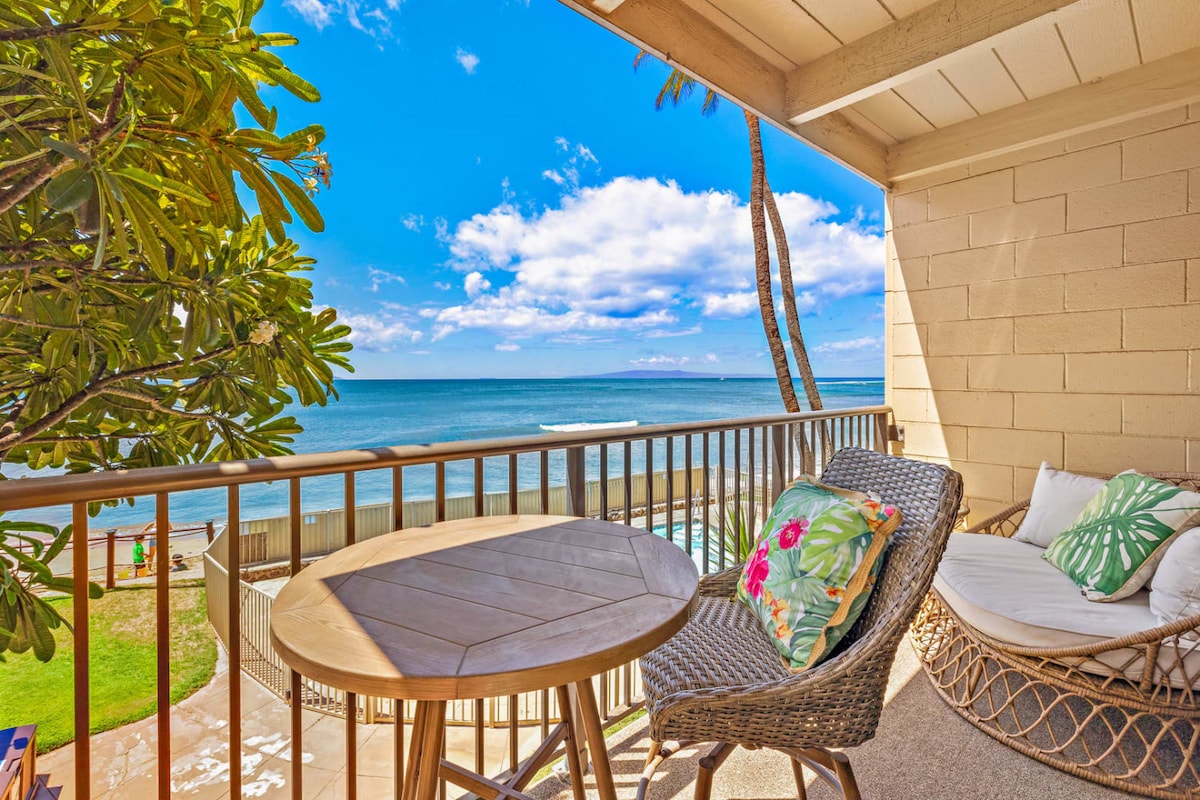 Wake up to the Pacific just outside your window. This front-row oceanfront one-bedroom condo sits so close to the water it feels like being on a cruise ship—without ever leaving land. From the private lanai, watch waves roll in, palms sway, and sea turtles glide through the clear water below. Set in quiet Maʻalaea, perfectly positioned between Kihei and Lahaina, this 5th-floor retreat offers sweeping ocean views, cooling trade winds, and a peaceful pace guests truly appreciate.