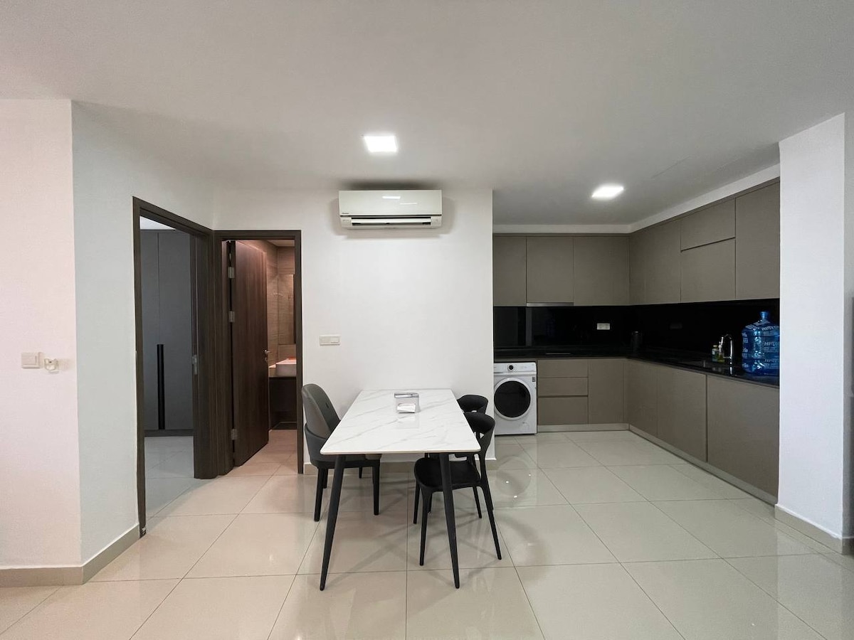 *Please note that for monthly stay (from 28 nights), there'll be an electricity charge at the rate USD 0.25/kwh. *Kindly message us if you need air port pick-up The bright & comfort 115sqm 2-bedroom apartment comes complete with a spacious balcony, a tranquil living space with views of the city and river, with modern appliances, cutlery, crockery, and kitchen utensil drawer organizer, a dining area, a storage room with washing machine, and a shoe cabinet.
