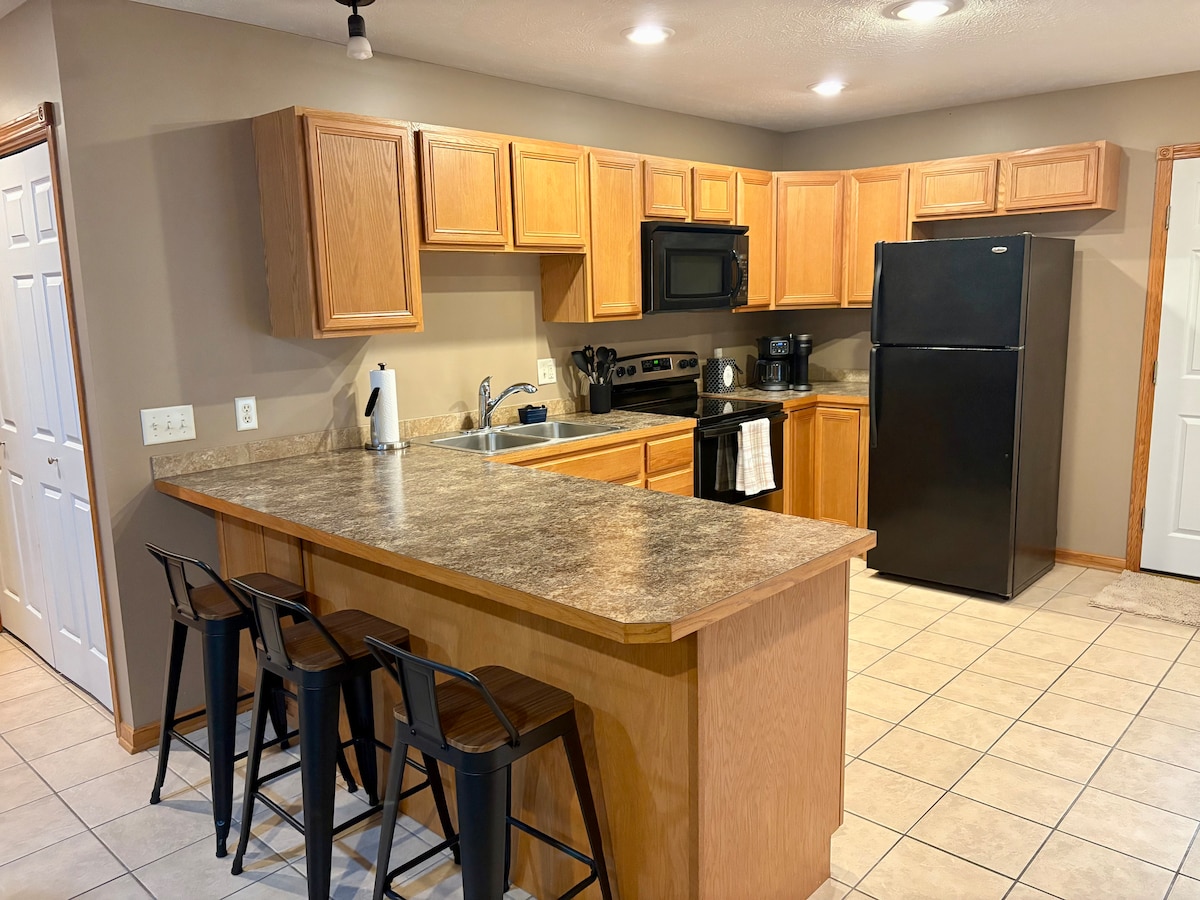 Skrenite s utabanog puta, samo 5 minuta izvan McPhersona. Uživajte u privatnosti s privatnim vanjskim ulazom i imate cijeli podrum za sebe! Opustite se u dnevnom boravku s TV-om s velikim ekranom i Wi-Fi mrežom. Uštedite na jelima u kuhinji i nadoknadite vrijeme pranja veša u mašini za pranje/sušenje veša. Zračni madraci su dostupni ako putujete s djecom. Stražnje dvorište se nalazi pored škole s opremom za igralište i košarkaškim igralištem. Vani ima mjesta za kućne ljubimce.