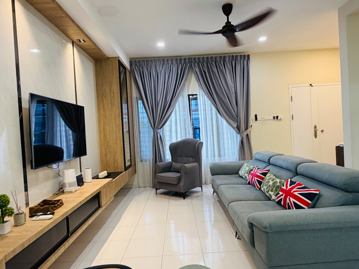 Pogodno za kraći ili duži boravak, poslovno putovanje, porodičnu posjetu, boravak gostiju na vjenčanju ili samo želite pobjeći od grada. Opustite se s cijelom porodicom u ovom mirnom smještaju. Prijateljski komšija, sjajni štandovi s hranom, obližnje trgovine, restorani, surau itd. Povedite porodicu, s prijateljima ili usamljenim rendžerom. Kompletni sadržaji kao što su 43" Smart TV, klima-uređaj s 3 jedinice, mašina za pranje veša, frižider, električni štednjak, kuhalo za vodu.. sve je potpuno novo samo za naše goste. Uživajte u boravku ovdje