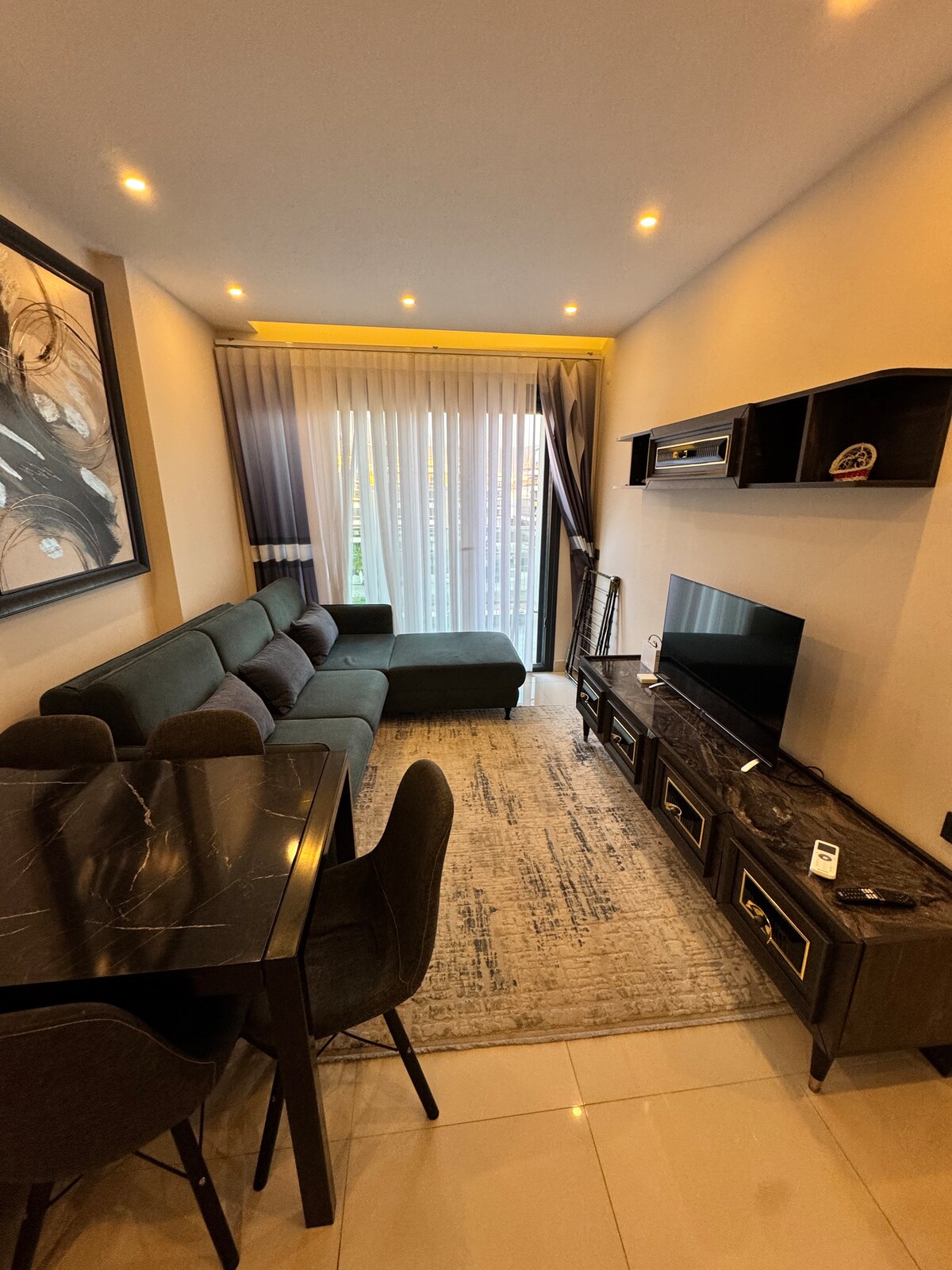 Naš luksuzni stan s 2 spavaće sobe nalazi se u izuzetno luksuznoj rezidenciji koja nudi mnoge sadržaje unutar kompleksa. S pogledom na jug, stan s pogledom na grad i more nalazi se na pješačkoj udaljenosti od mora, okružen tržnicama, restoranima i drugim sadržajima koje okrug Mahmutlar nudi. Ovaj penthouse stan ima prekrasan pogled na more i zalazak sunca, kao i roštilj na balkonu. Informacije o boravku dužem od mjesec dana dostupne su na zahtjev.