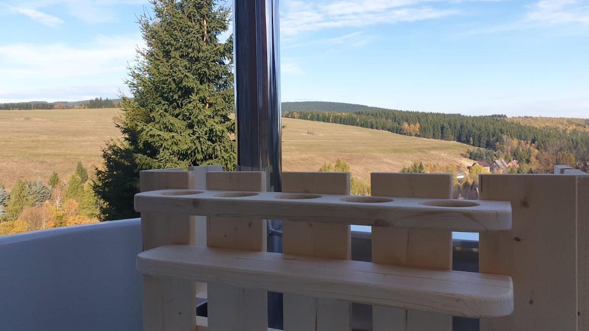 Planinska seoska kućica koja se nalazi na prekrasnom mjestu s pogledom na planine Ore u neposrednoj blizini SKIJALIŠTA Klínovec. Seoska kućica je idealna za 6-8 osoba, ali može primiti 10 gostiju. Dnevni boravak s masivnim kaminom. Gosti su smješteni u 2 sobe u potkrovlju/3+4 osobe/ i jednoj sobi s WC školjkom u podrumu /3 osobe/. Dnevni boravak je povezan s potpuno opremljenom kuhinjom, a tu je i trpezarija. Kuća ima finsku saunu i finsko bure koje je poplavljeno 6-8 sati u skladu s vještinama i vremenskim prilikama.