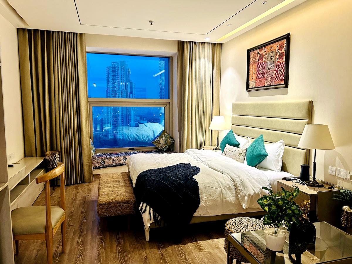 Experience serene comfort in this executive 1BHK, perched above a vibrant mall in Gurgaon. Enjoy a dedicated workstation, ultra-clean setup, high-speed WiFi, and free parking. Our strategic location offers easy access from NH48, Dwarka Expressway, SPR, and major hubs like American Express, TCS, Skyview Corporate Park, DLF Corporate Greens. Find Inox, pubs, and restaurants within the premises. Cabs are available 24/7. The stay is ideal for both business and leisure travellers in Gurgaon.