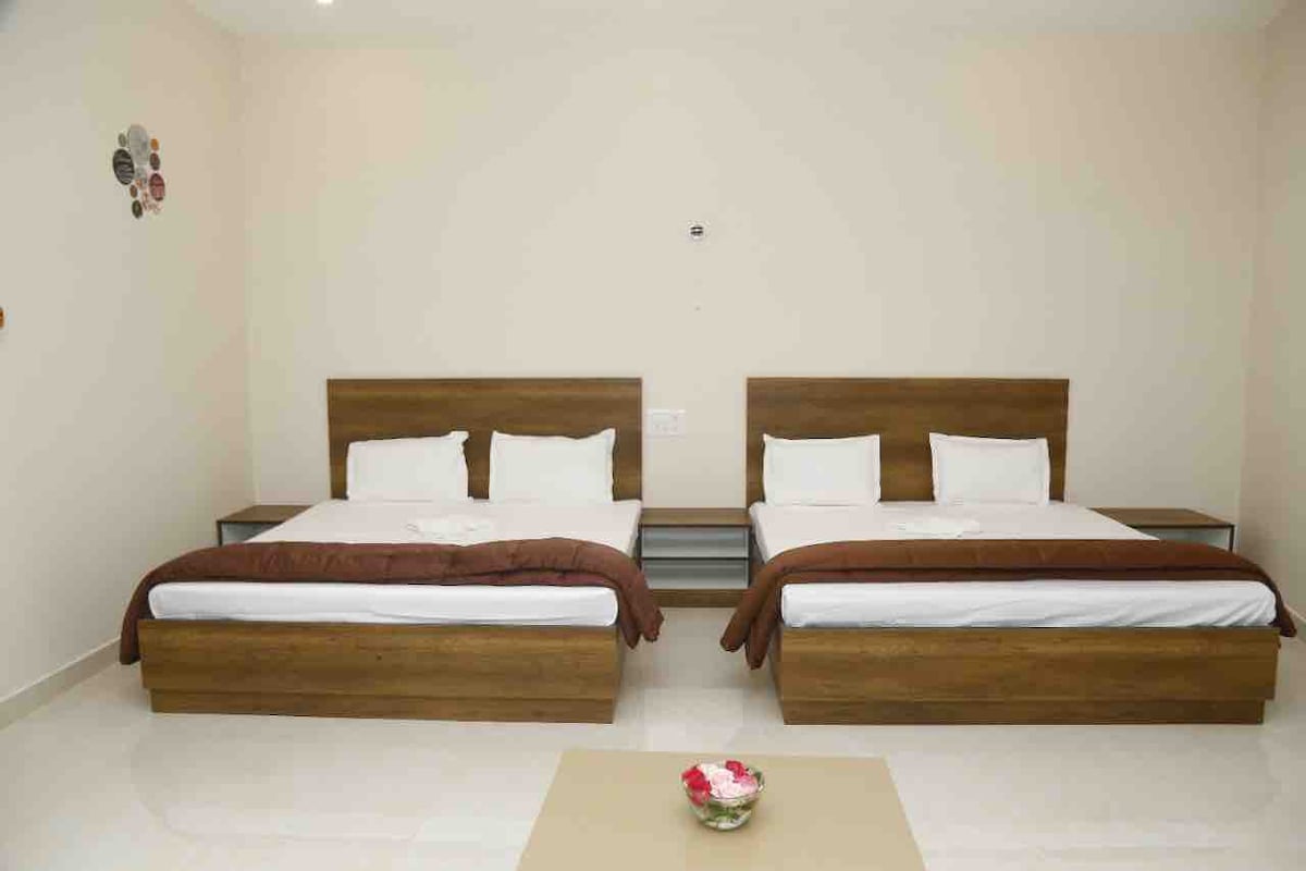 Dobro došli u Siri Penthouse! To je prekrasan, privatni penthouse s 2 kupatila s klimatizovanim spavaćim sobama, ogromnom terasom i pogledom na Chamundi Hills. Potpuno je namješten s dobro opremljenom kuhinjom. Nalazi se na 3. spratu (s pristupom liftu) s popularnim kafićem koji se nalazi ispod i parkingom u podrumu. Doručak je dostupan uz nadoplatu od kafića. Udaljen je 12-15 minuta vožnje od palate Mysore, zoološkog vrta i centra grada. Djeca starija od 8 godina bit će naplaćena kao dodatni gosti.