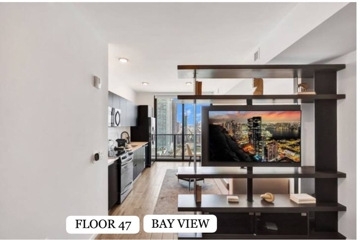 Doživite moderan luksuz na 50. spratu! Ovaj novouređeni 1BD penthouse nudi prekrasan pogled na zaljev i grad kroz prozore od poda do plafona koji ispunjavaju prostor prirodnim svjetlom. Spavaća soba ima bračni krevet, a dnevni boravak uključuje udoban kauč na razvlačenje, savršen za najviše 4 gosta. Uživajte u potpuno opremljenoj kuhinji, bazenu u stilu odmarališta, teretani i spa centru. Smješten u centru Miamija, samo nekoliko koraka od najboljih restorana, šopinga i noćnog života u gradu.