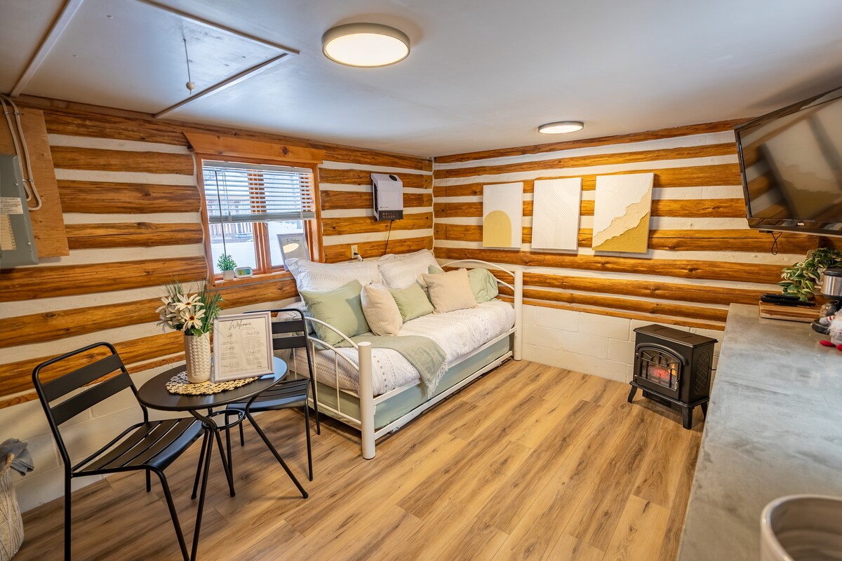 Eh Frame je trospratna luksuzna brvnara inspirisana Skandinavijom s dvije potpuno odvojene jedinice: Sunrise i Sunset Suites. Vaša grupa će imati ekskluzivan pristup apartmanu Sunrise (sve što je prikazano na fotografijama), uključujući dvije spavaće sobe, terasu, privatni spa i ognjište. Prednja jedinica, Sunset Suite, je zaseban smještaj. Cijeli zaštitni zid prolazi kroz centar smještaja, osiguravajući privatnost i udobnost svim gostima. Nalazi se samo nekoliko minuta od Whispering Springsa i Ste. Annes Spa.