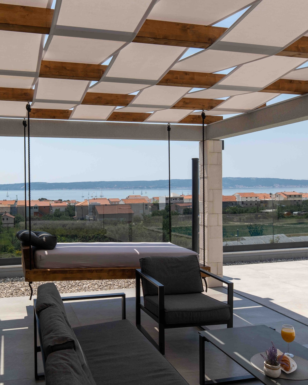 Potpuno novi luksuzni apartman Marra koji se nalazi u Kaštel Gomilici pruža ekskluzivan boravak koji vam omogućava pristup privatnom hidromasažnom jacuzziju,ogromnoj terasi i dnevnom boravku s panoramskim pogledom na našu nevjerovatnu hrvatsku obalu. Stari grad Trogir je udaljen 7 km,grad Split (Dioklecijanova palača) je udaljen 13 km,a aerodrom Split 5 km od stana.