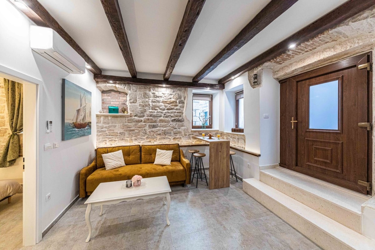 This charming Apartment, built in a house the 16th century, is a stunning example of traditional Mediterranean architecture. Recently renovated, it beautifully combines the old-world charm of its stone walls with modern comforts. Located in the heart of Kaštel Stari, right on Brce Square, it offers a peaceful atmosphere just 50 meters from the sea. Immerse yourself in history while enjoying easy access to shops, restaurants, and UNESCO World Heritage cities like Trogir and Split.