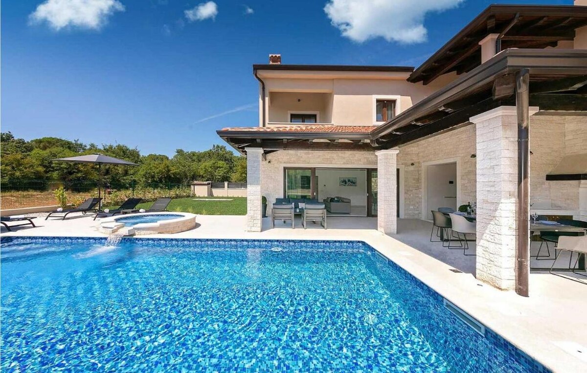 Ova luksuzna kuća za odmor spaja modernu udobnost s autentičnim istarskim šarmom, nadomak svih atrakcija Istre. Djelimično izgrađen od tradicionalnog kamena, nudi toplinu i eleganciju. Možete uživati u 4 spavaće sobe sa zasebnom kupaonicom, wellness prostoru sa saunom i hidromasažnom kadom, privlačnom bazenu, vanjskoj kuhinji s roštiljem i elegantnoj zoni za opuštanje tokom cijele godine. Okružen autohtonim zelenilom, savršeno je utočište za one koji traže luksuz, tradiciju i privatnost u mirnom okruženju.