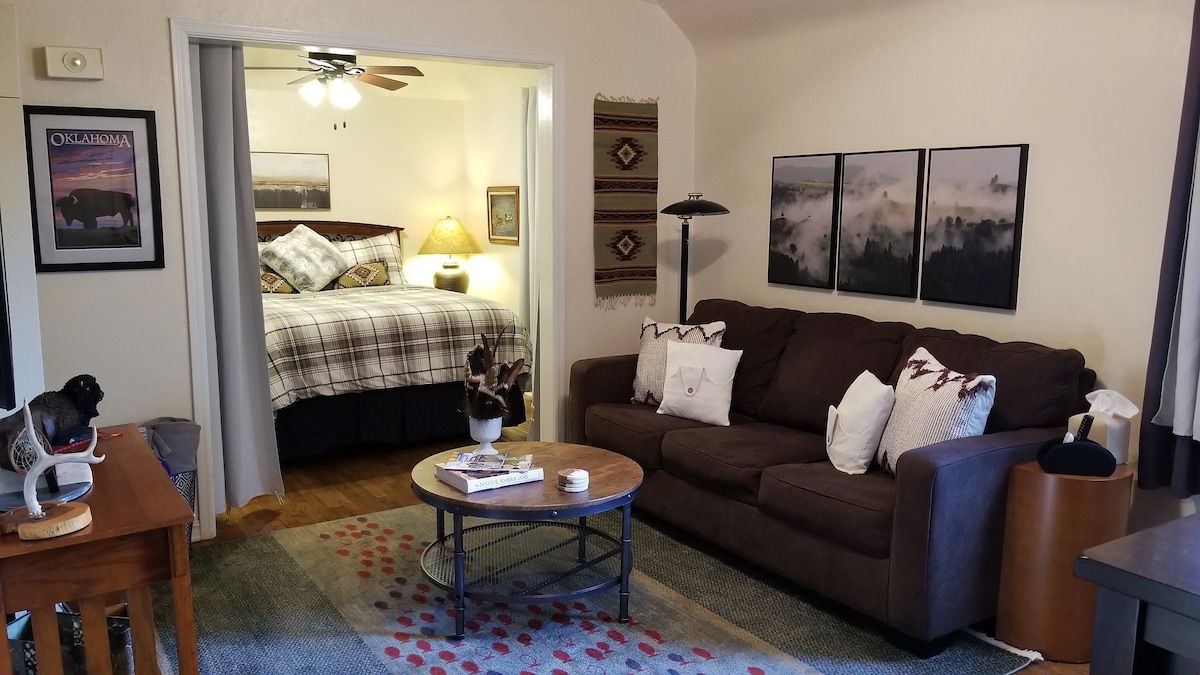 Bilo u Ponca Cityju zbog posla ili zadovoljstva, uživajte u ovom udobnom stanu. Ovaj skriveni dragulj nalazi se u centru grada, nekoliko minuta od hrane, zabave i osnovne opreme. Ovaj udoban stan ima ažuriranu jednu spavaću sobu s bračnim krevetom; jedno kupatilo s kombinacijom kade/tuš kabine; mašinu za pranje i sušenje veša koja se može složiti; potpuno opremljenu kuhinju; i kauč na razvlačenje. Trpezarija se može koristiti kao radni prostor. Ovaj stan također uključuje Wi-Fi i Sling TV. Opskrbljujemo kafu, čaj i vodu za vašu udobnost.