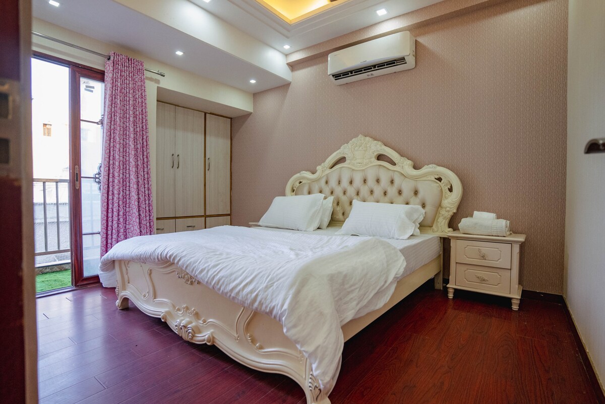 Uz svaku udobnost i vrhunske sadržaje, ovaj ugodan stan čini prekrasnu pozadinu fantastičnog odmora u Ajmeru/Pushkaru. Pogled na brdo, peškiri od šljive i svježa posteljina, ukras za umiranje. Luksuz vas čeka u ovom dvosobnom stanu koji odiše profinjenošću i profinjenošću. Prelijep i moderan stan ima 2 velike spavaće sobe sa spojenim vešernicama, dnevnu sobu i potpuno funkcionalnu kuhinju za lagano kuhanje. Trpezarija i dnevni boravak su samo nekoliko koraka udaljeni od dnevnog boravka.