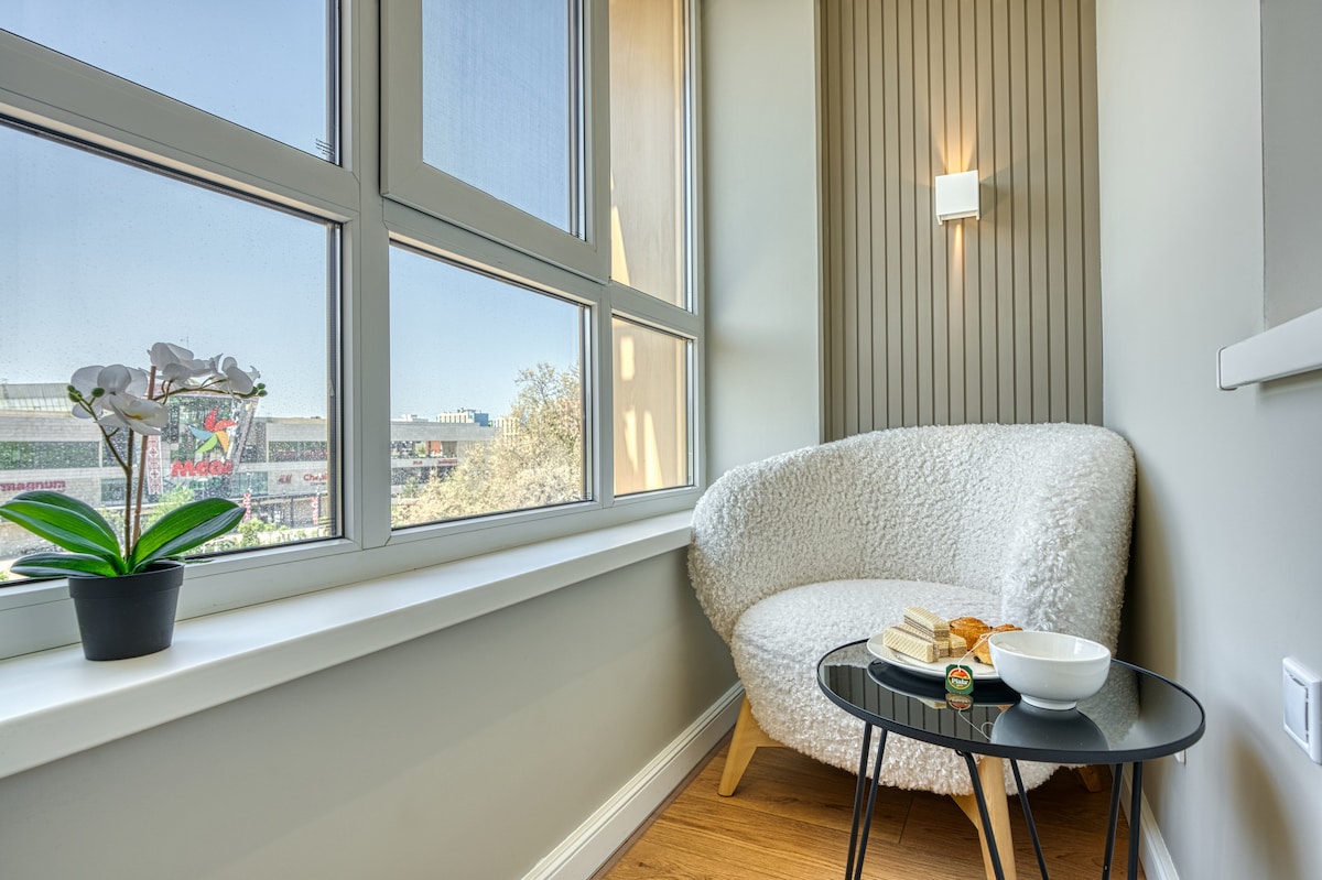 Заселение в любое удобное время. Светлая и чистая квартира для комфортного проживания. Качественное постельное бельё, ортопедический матрас и подушки обеспечивают хороший сон. В квартире есть всё необходимое для быта и длительного проживания. Удобное расположение рядом с Mega Park, магазины и кафе в шаговой доступности. Подходит для гостей города, командировок и спокойного отдыха.