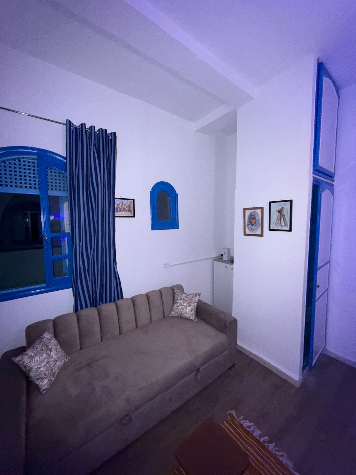 La Grande Suite vous accueille en plein cœur de Tozeur. Elle comprend une chambre-loft élégante avec grand lit pour 2 personnes, un salon lumineux avec canapé-lit pouvant accueillir confortablement un 3ᵉ invité. Le petit-déjeuner est offert chaque matin dans l’espace dédié au rez-de-chaussée. Envie de découvrir le désert ? Nous proposons une sélection d’activités inoubliables, authentiques et accessibles pour vivre pleinement l’expérience saharienne.