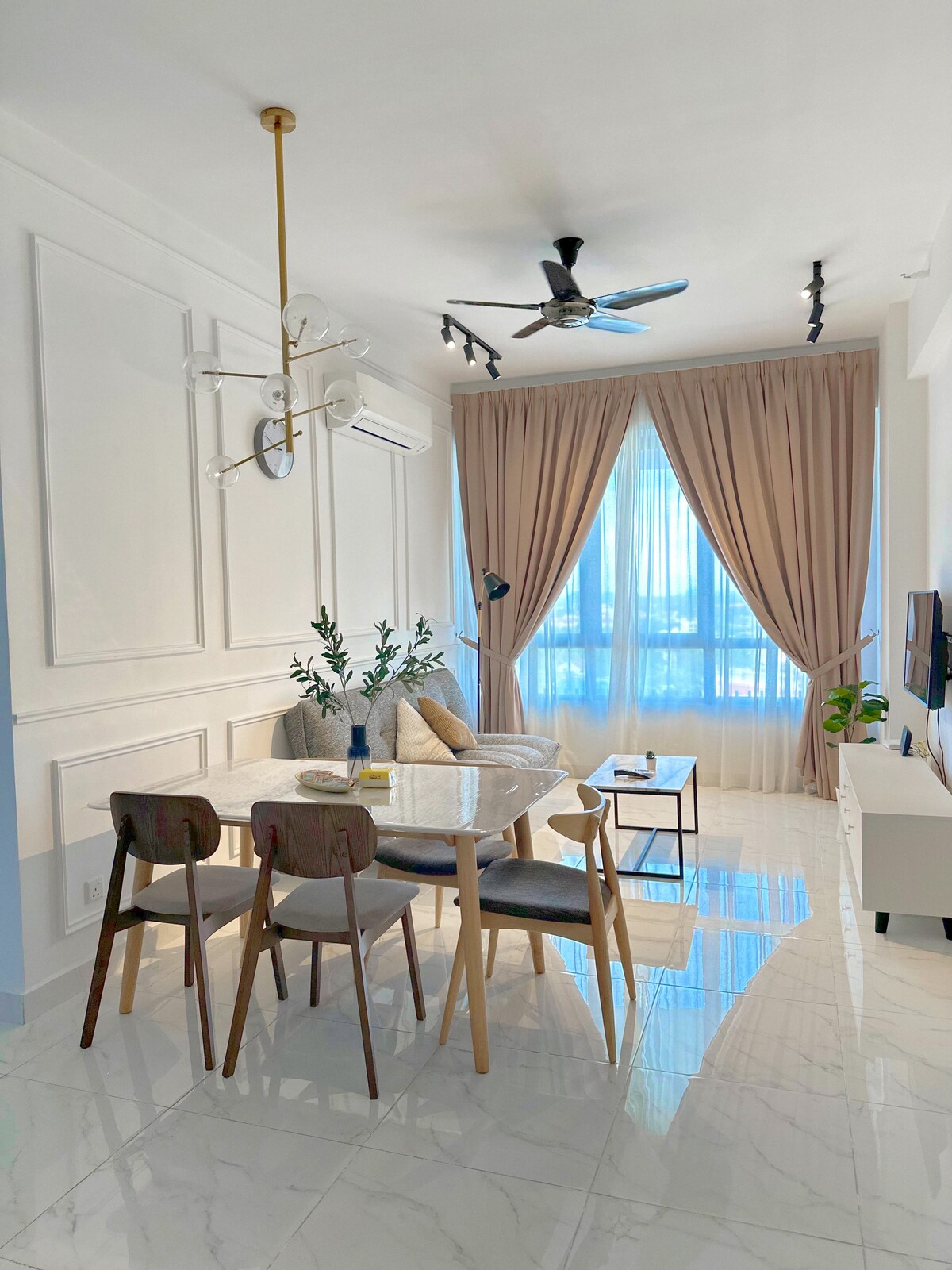 Modern and cozy H Elite Design Suite, operated by AGhome (not part of H Elite Hotel). 🛏️ Room & Sleeping Arrangement 1 King-size bed – perfect for couples or anyone who loves extra comfort 1 Single pull-out bed – ideal for a child, an extra adult, or a friend Enjoy a clean, comfortable stay with essential amenities. Located just a 1-minute walk from Mydin Tunjung Mall, with restaurants like Coefee Bean, Zus and shops nearby—convenient for both leisure and business travelers.