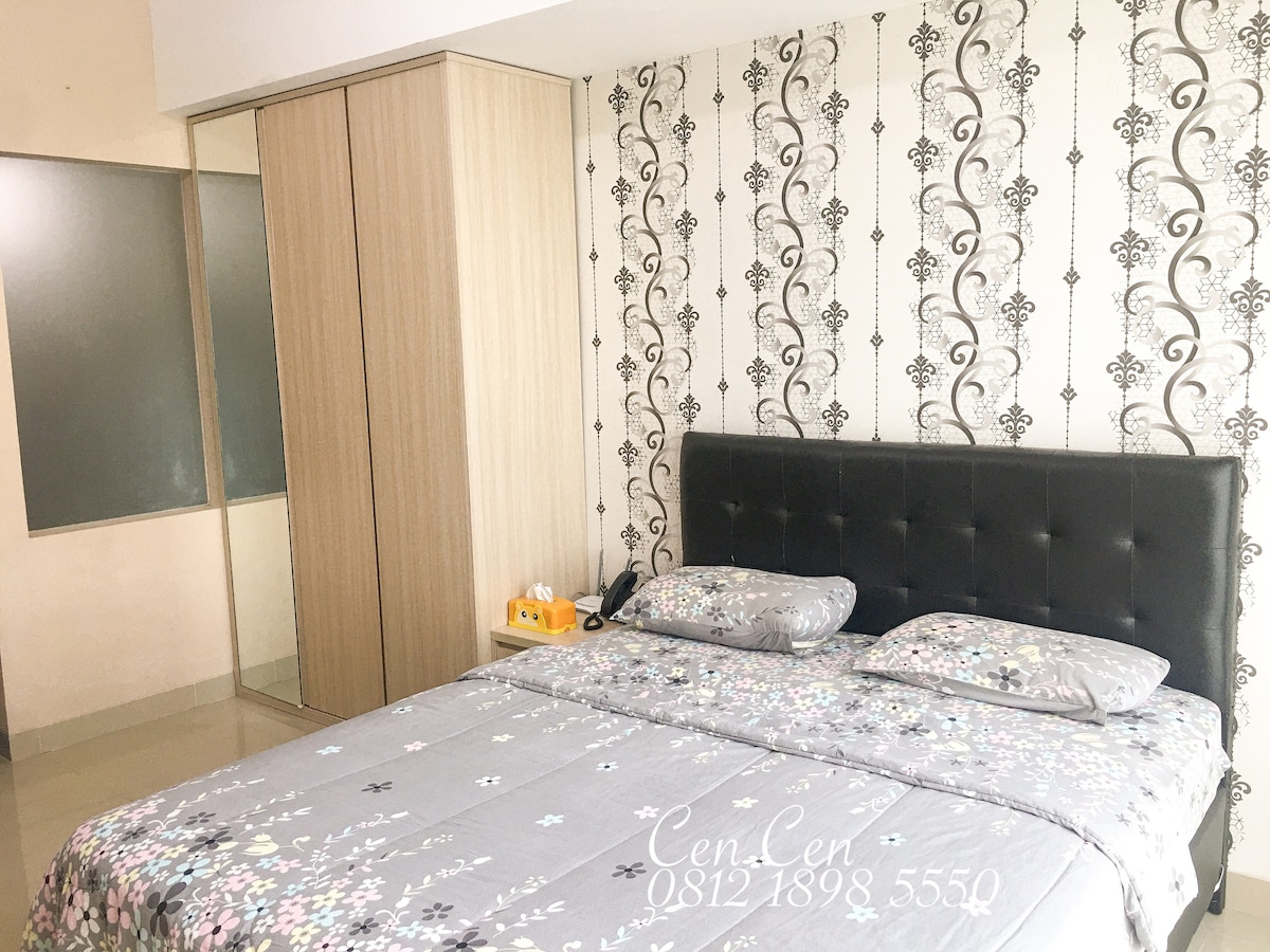 🏙️ Cozy Golf View Apartment in Lippo Karawaci 🛏️ Bedroom & Living Area - Spacious queen-size bed with fresh linens - Pull-out bed - Work desk and chair - Large wardrobe and extra wooden cabinets for storage 💻 Comfort & Entertainment - Fast WiFi connection - TV - Air conditioning 🍳 Fully Equipped Kitchen - Electric Stove - Refrigerator - Electric Kettle - Complete cooking utensils and tableware set 🛁 Private Bathroom - Hot shower - Fresh towels, soap, and shampoo