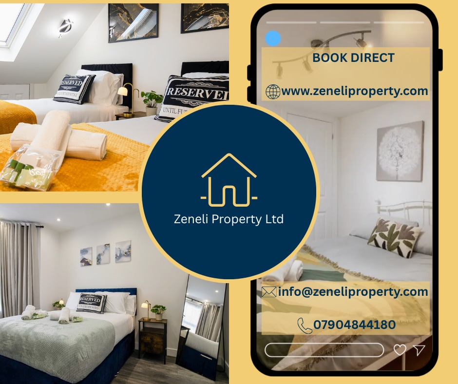 Moderan dvokrevetni stan na vrhunskoj centralnoj lokaciji u Bedfordu, na korak od nasipa, centra grada, ragbi kluba Bedford Blues i bolnice Bedford. Savršeno za izvođače radova, profesionalce, preseljenike i ekipu Universal Studiosa. Jednostavan pristup željezničkoj stanici Bedford i A6. Izuzetno brz Wi-Fi, 50-inčni Smart TV, aparat za kafu, kompletna kuhinja, peškiri, posteljina, sapuni. Parking s ogradom, pristup liftu, zvono na vratima. Mirno, elegantno i sigurno. Glavni gost stariji od21 godine. Svi gosti stariji od18 godina moraju predočiti važeći ID s fotografijom.