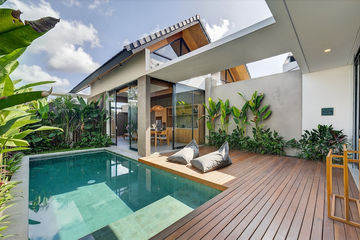 Flood-free area Welcome to Villa Dwipa ☀️ A place where you can indulge yourself in the beauty and luxury of a completely private Bamboo Villa and all it’s facilities surrounded by peaceful nature 🍃 From a dive in the private pool, watching a movie on the drop down cinema screen and having a neighbor-less party in the living room to spending peaceful quality time, cozily unwinding on the balcony and everything in between, whether you're friends or lovers, we guarantee you a good time 😊