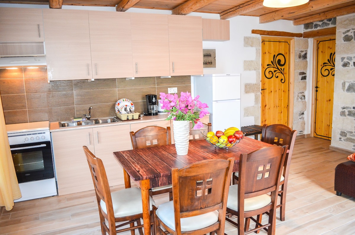 Zapanjujuća, novouređena vila smještena na rubu tradicionalnog kretskog sela s pogledom koji oduzima dah. Zaštićeno područje izvanredne ljepote. Sunday Times ga je opisao kao „zakoračenje u prošlost” 2 minute hoda vodi vas do seoskih staza gdje ćete pronaći 2 mini pijace i izbor porodičnih taverni koji poslužuju ukusnu domaću hranu. Plaže su udaljene 5-10 minuta vožnje, a taverne su poznate po svježe ulovljenoj ribi. Opustite se i doživite ovo čarobno područje!