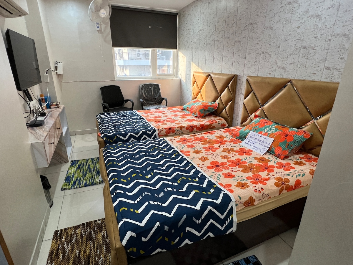 Rezervisano za porodice, korporacije i idealno za pacijente (Fortis, Max itd.). Mjesto je na aerodromskoj cesti , u blizini međunarodne škole amitija. Zaista s privlačnim i obogaćujućim enterijerom. Neki od sljedećih sadržaja u ovom objektu su sljedeći :- >HD pametni televizori >Plinski šporet (dodatno cijene) >dobro opremljena kuhinja s sadržajima kao što su mikrovalna pećnica, frižider, dimnjak, posuđe, kuhalo za vodu, mikser itd. >veš mašina > dvostruka svjetla u boji u sobama