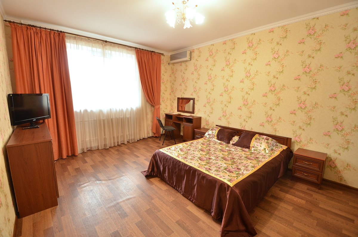 Stan na raskrsnici ulica Sobornaya i Potemkinskaya. Tu je internet(WI-FI),ugaono kupatilo,zvučnik,klima uređaj,kao i sve što je potrebno za udoban boravak. U blizini se nalazi supermarket,noćni klub,McDonald's,kafić. Izdajem dokumente. Transfer od/do aerodroma.