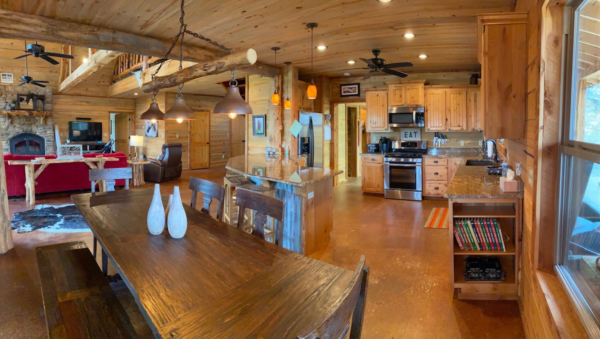 PREGLED Ova prekrasna i prostrana brvnara od 2600 kvadratnih metara i planinska nekretnina ima sve što biste vi i vaša porodica mogli poželjeti za savršeno utočište! Smješten na planinama Kiamichi u SE Oklahomi na 3 hektara i lakom 3-satnom vožnjom od North Dallasa. Uživajte u masažnoj kadi, roštilju, prženju smaragdnih tokova, planinarenju, promatranju zvijezda i nekim od najspektakularnijih pogleda koje ćete pronaći u Oklahomi. Mnoge atrakcije su tokom cijele godine nedaleko od vas. Ribolov, plaža i rampa za brodove u blizini.