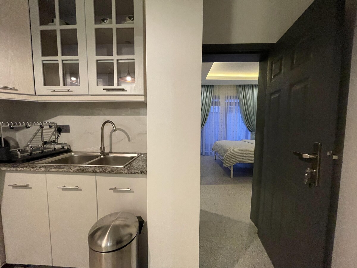 Dobro došli u naš luksuzni 1BR Airbnb u Reberu, Kigali, samo 20 minuta od aerodroma. Uživajte u modernom boravku otvorenog tipa, bračnoj spavaćoj sobi, privatnoj terasi s pogledom na grad, bazenu, teretani, komunalnim uslugama, Wi-Fi-u, TV-u, osiguranju i garaži. Sedmično čišćenje je uključeno. Neobavezno pranje veša i iznajmljivanje automobila. Bez kućnih ljubimaca i pušenja. Dostupan je dugoročni boravak: otvoren za diskusiju Potpuno namješten depozit: najam na mjesec dana (najam od 3 do 6 mjeseci)