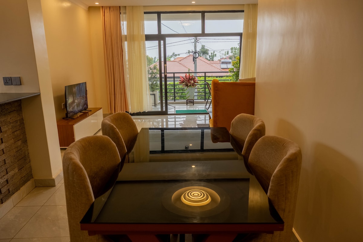 Enjoy the privacy and space of a fully serviced two-bedroom apartment within the prestigious Lemigo Hotel, set on Kigali’s scenic hills. Guests benefit from hotel-level security, on-site dining, gym and spa access, while still having a spacious living area ideal for longer stays, families, business travel, or relaxing in comfort. It’s the perfect blend of home-style living and luxury hotel convenience in one of Kigali’s most sought-after locations. 10 minutes from Kigali International Airport!