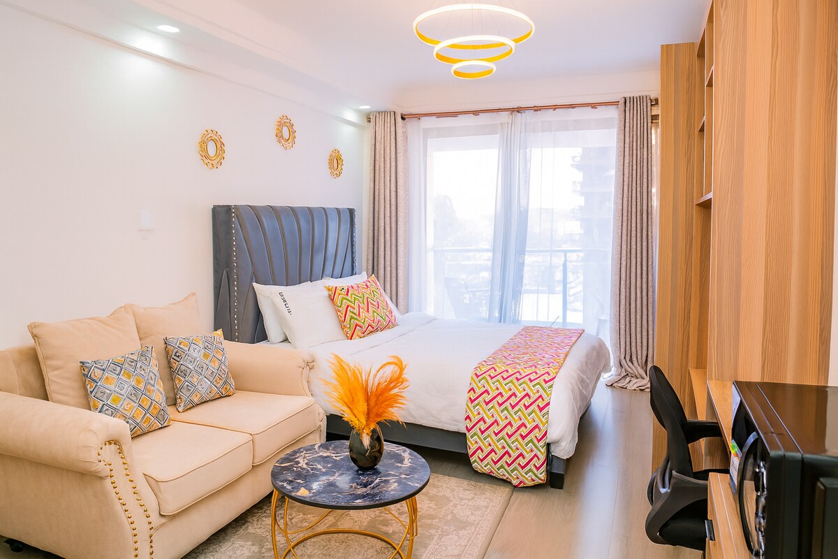 Dobro došli u moj divni studio apartman. Uživajte u prekrasnom pogledu na susjedni prostor kroz kuhinjski prozor. Studio se idealno nalazi u blizini Yaya Centra, Prestige Mall i Junction Mall. Također se nalazi na pješačkoj udaljenosti od mnogih odličnih restorana koji nude različite kuhinje. Sadržaji uključuju brzi internet, mašinu za pranje veša, aparat za kafu, toplu vodu, dovoljno parking mjesta, brze liftove, teretanu, generator u pripravnosti (zajedničke prostorije) i krov s odličnim pogledom na horizont Nairobija.