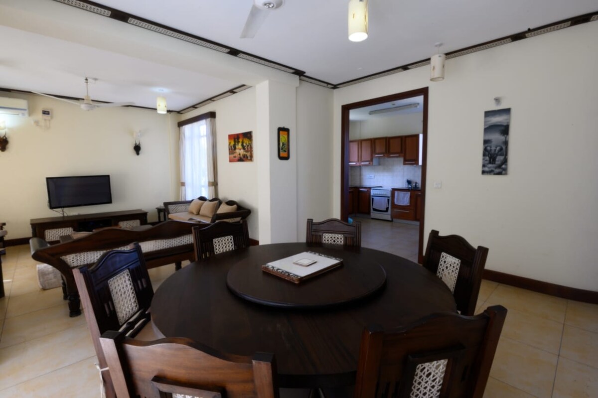 Tradicionalna kuća u svahilskom stilu, nalazi se na koralnom rtu s pogledom na more, plažu, prekrasne cvjetne vrtove, privatni pristup plaži. Nedavno je postavljen bazen, POGLEDAJTE KUĆNI RED Vila ima 2 nivoa i pogled na Indijski okean, privatni direktan pristup plaži, koja se proteže s obje strane, unutar morskog parka. Uključuje 3 osoblja, kuhara, dnevnu poslugu u sobi i vrtlara. Može spavati do 10 osoba. Lako se prilagođava i čini udobnim za ugošćavanje manjih grupa, koristeći samo spavaće sobe na spratu.