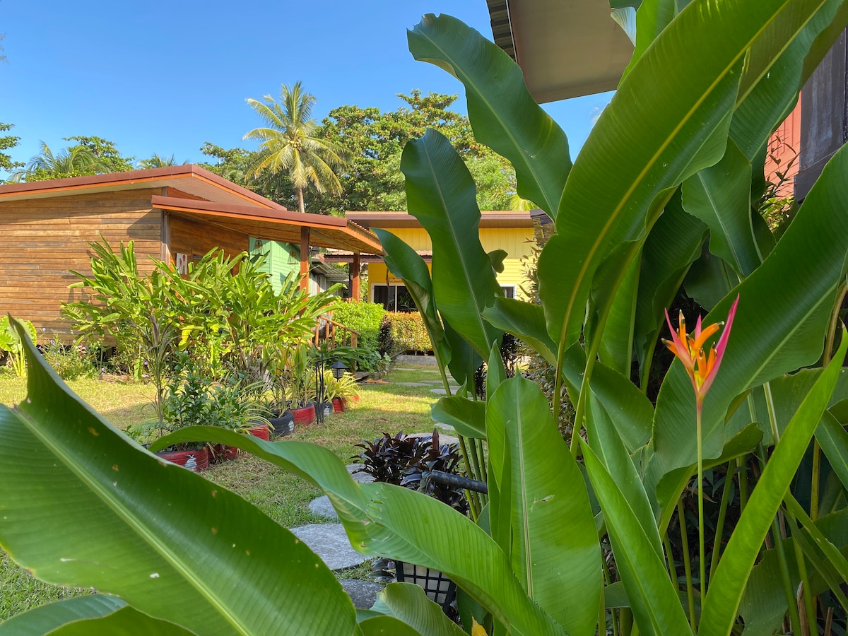 Naš smještaj se nalazi niz malu ulicu uz glavnu cestu, dovoljno da se osjećate daleko od vreve i vreve, a samo 10mn hoda do trgovina i plaže. Postoje četiri kuće raspoređene po velikom zemljištu, tako da ima dovoljno privatnosti. Visoka džungla na brdu iznad kuća je dio terena i donosi čarobna viđenja šarenih ptica , leptira i divljih životinja uopšte . Imamo prijateljske mačke i pse u objektu .
