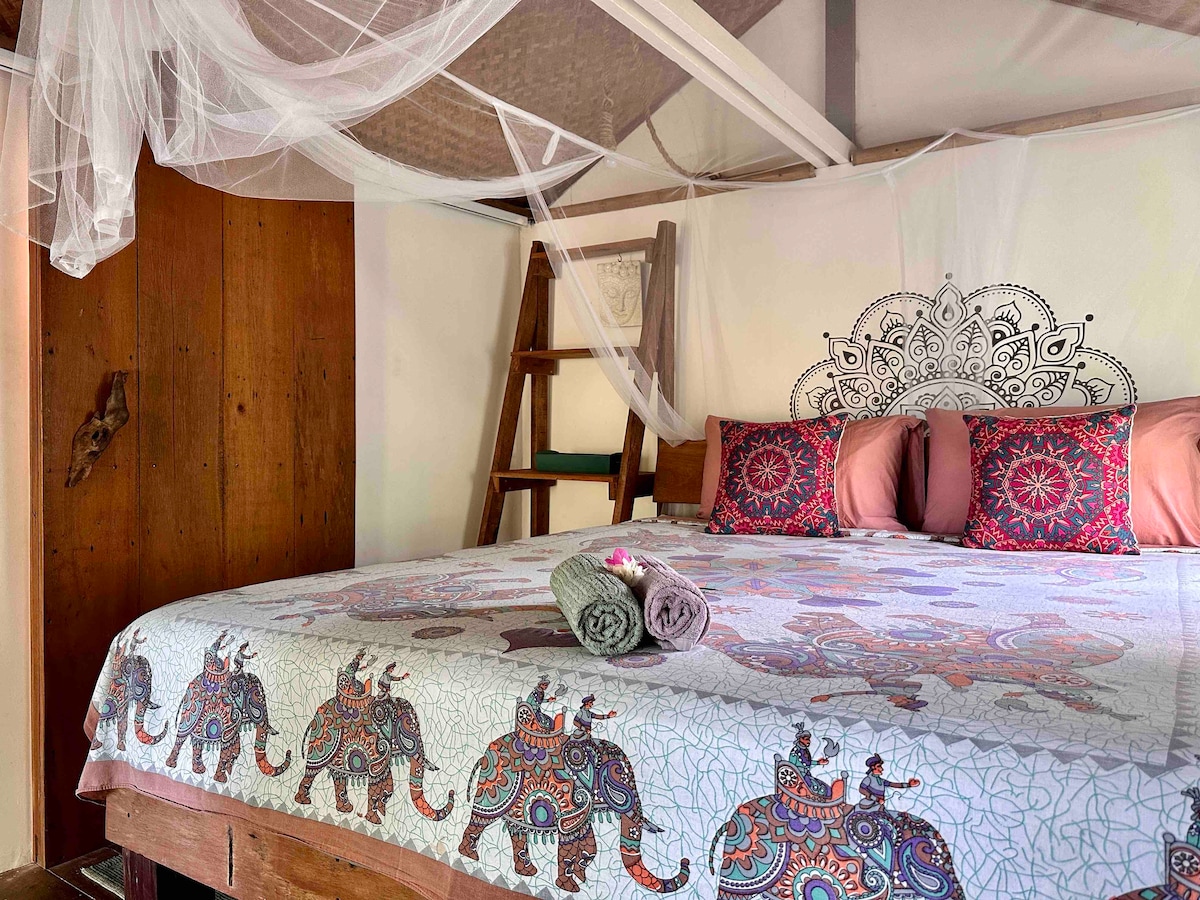 Eko bungalovi u džungli s pogledom na Haad Salad, smješteni visoko u planinskoj šumi, uronjeni u zvukove ptica, vjetra i čiste ostrvske prirode. Svaki bungalov uključuje bračni krevet, privatno kupatilo s tušem s toplom vodom, mrežu protiv komaraca, balkon i viseću ležaljku. Prirodno hlađenje hladom džungle i svježim povjetarcem (bez klima-uređaja). Samo 3 minute od plaža Haad Yao i Haad Salad. Gosti također uživaju u besplatnom pristupu našem svjetski poznatom ekstatičnom plesu u piramidi Shala.