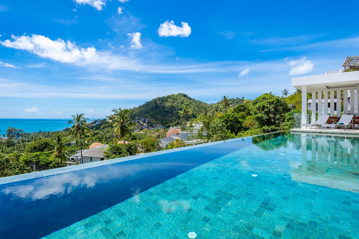 620 m² privatna luksuzna vila s pogledom na more od 180° na brdima Chawenga → Dnevni doručak i čišćenje Beskonačni bazen visok→ 25 m → Teretana, bilard, pikado i stoni tenis → Gostoprimstvo s osobljem na licu mjesta 0-24 (engleski, tajlandski) → Betonska kada s ljuskom od jajeta → Svaka spavaća soba s privatnim kupatilom → Brzi internet i Wi-Fi → Cinema Smart TV s Netflixom Zvučni sistem→ Bose → Besplatna kafa i voda za piće Uključena je→ voda i struja → 10 m vožnje do plaža → Više usluga dostupno na zahtjev