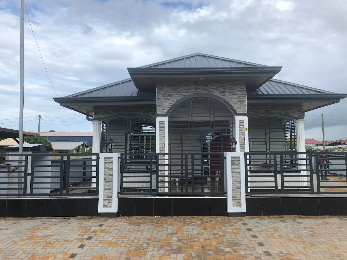 Renovated in 2024, very spacious Villa for up to 8 adults. Green surroundings. 15 min. from the center of Paramaribo. Secured with grilles and fencing. Internet, living room, kitchen, bathroom, shower with cold & hot water, front and rear balcony, 4 bedrooms, king-size beds, wardrobes and bedside tables, make-up table, air conditioning, refrigerator, microwave, gas stove, washing machine, dryer, iron, dryer, sofa, dining areas, chairs, kitchenware, sheets, blankets and bath towels.