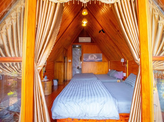 Hidden in Măng Đen's mist, Sumi's House is a charming wooden home on a hill. Touch the clouds from this private retreat, perfect for couples. Large windows frame pine forests and drifting clouds. Evenings: hot cocoa under soft lights, serenaded by mountain winds. Here, time stops; worries vanish, leaving peaceful love. A "dream suspended in the sky," it's ideal to "escape the world" with your loved one.