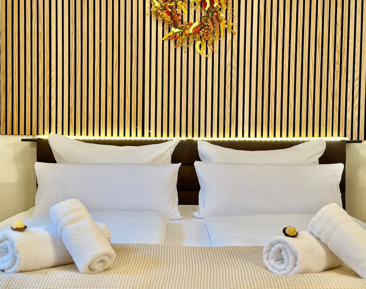 - Počevši od 2024. godine, nedavno smo ga renovirali i udobno dizajnirali za naše goste - Naše oko 40 m² za nepušače Stan je za 2-3 osobe. - Ima zaseban ulaz i miran je Terasa za sunčanje. - Postoji velika dnevna / spavaća soba veliki bračni krevet, kauč na razvlačenje, velika fotelja i TV sa satelitskom televizijom. - Mala moderna čajna kuhinja nudi svima Opcije za samostalno posluživanje hrane. - Kupatilo ima Staklena tuš kabina, podno grijanje i fen za kosu.