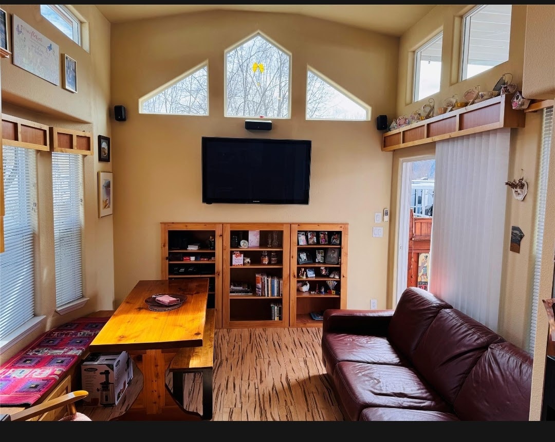 Separate detached home all to yourself. This cabin boasts all the amenities of home, fully equipped kitchenette, large island with seating, and patio seating area out front. We are located next to the Selkirk Loop trails, oxbow swimming hole and a 2 minute drive from the regional airport and Selkirk College. This quiet area is surround by poplar trees and has a whole area near the river to explore, all within steps of the cabin.