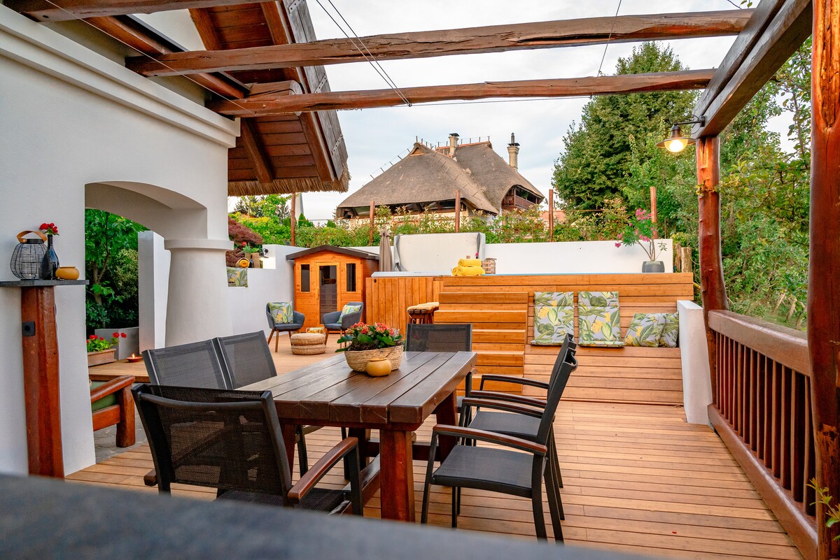 Kuća Eko Vukan smještena je usred uredno položenih vinograda, daleko od gužve. Kuća od drvene konstrukcije i zidovi od slame i gline osiguravaju da se odmah osjećate kao kod kuće. Kuća se nalazi na vrhu brda, tako da možete uživati u prekrasnom pogledu! Nastavite se opuštati u dostupnoj sauni ili obližnjim spa centrima s termalnim kupkama i odličnim bazenima u kojima djeca mogu uživati.