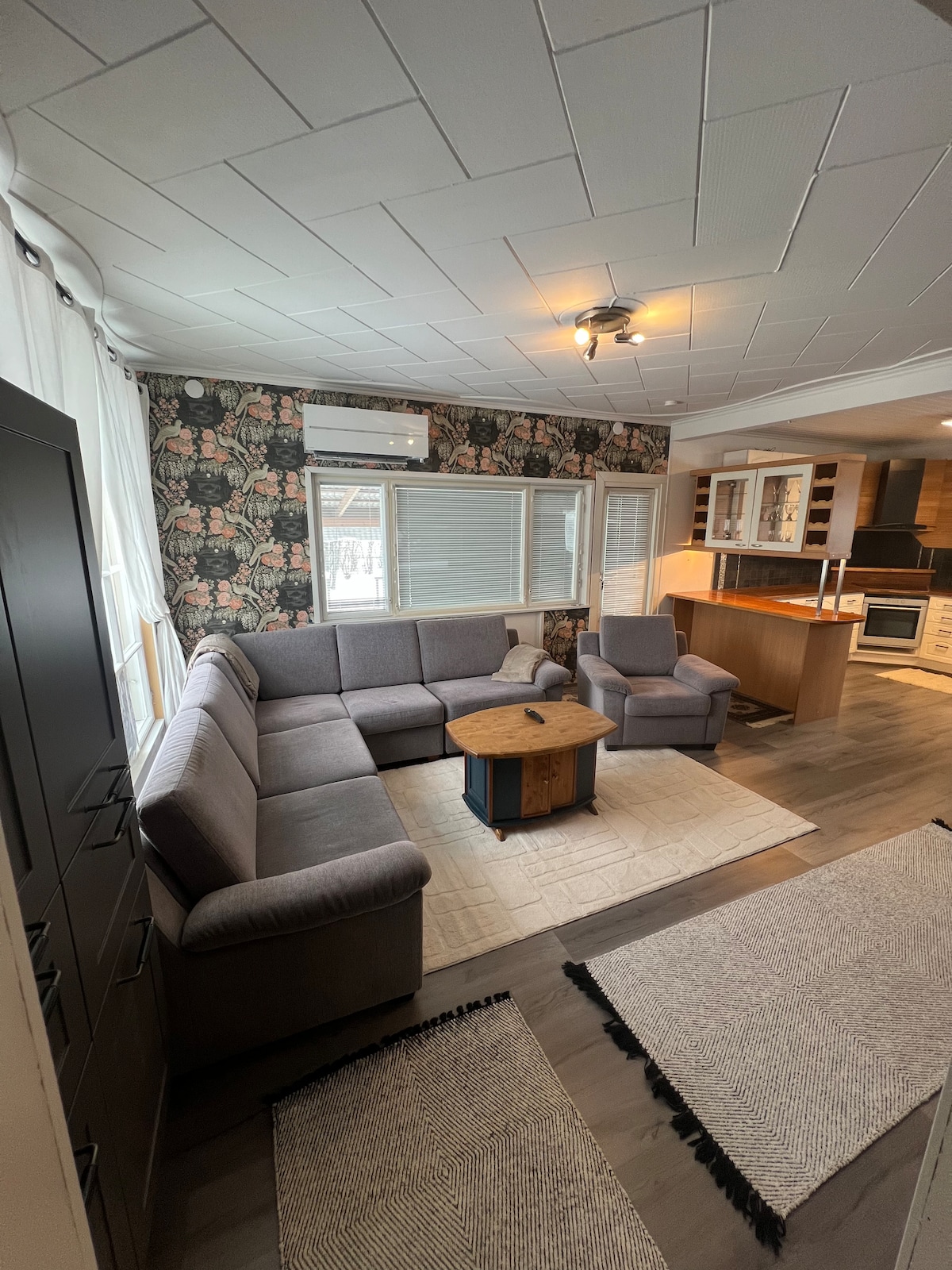 Potpuno modernizovana tradicionalna finska kuća s velikim vrtom i prostorima za zabavu. Postoje 4 spavaće sobe i 2 kupatila, a zajednički prostori u prizemlju su povezani kako bi obezbijedili otvorenu kuhinju s centralnim otokom, trpezarijom s prostorom za sjedenje za 8 osoba i velikim salonom s ekranom od 58 inča. S prednje, bočne i stražnje strane objekta nalaze se vanjski prostori s terasom.