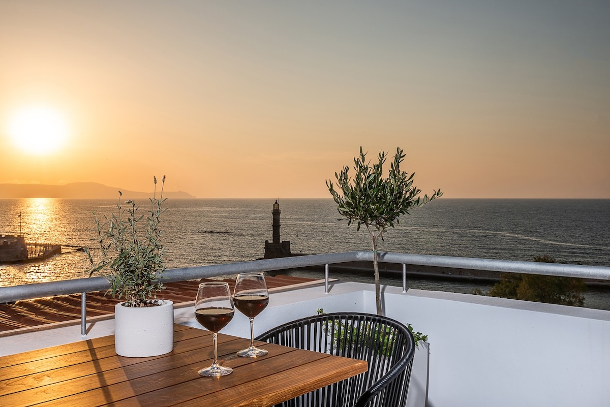 Evrima high end residence is a luxurious residence 85 sq m with jacuzzi, in the heart of the Old Port of Chania. It features a view of the historic lighthouse, a 40 sq m terrace, a 20 sq m courtyard and a balcony . The fully equipped kitchen and all the amenities allow for comfortable and carefree holidays to the visitors. At Christmas Holidays the residence will be a lovely spot in the heart of the city