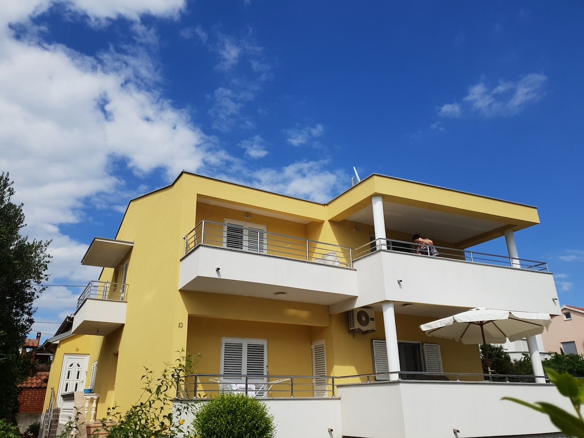 The apartments are located in a family house in Dicle , near the beach ( 10 meters ) , to the city of Zadar is only few kilometers . Among other things we offer free parking,wi - fi, air conditioning! Nearby are a supermarket, coffee bar, playground,