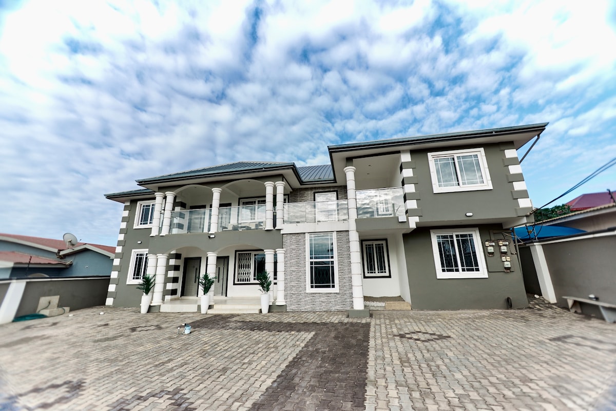 Uživajte u mirnom ambijentu u ovom elegantnom mjestu, s porodicom. Strateška lokacija s jednostavnim pristupom Temi, Akri, Aburi i Međunarodnom aerodromu Kotoka. Možete se voziti biciklom, trčati ili hodati u blizini privatnog, ograđenog stambenog kompleksa. Najbolje je imati privatni prevoz, ali se javnim prevozom može pristupiti na autobuskoj stanici autoputa.