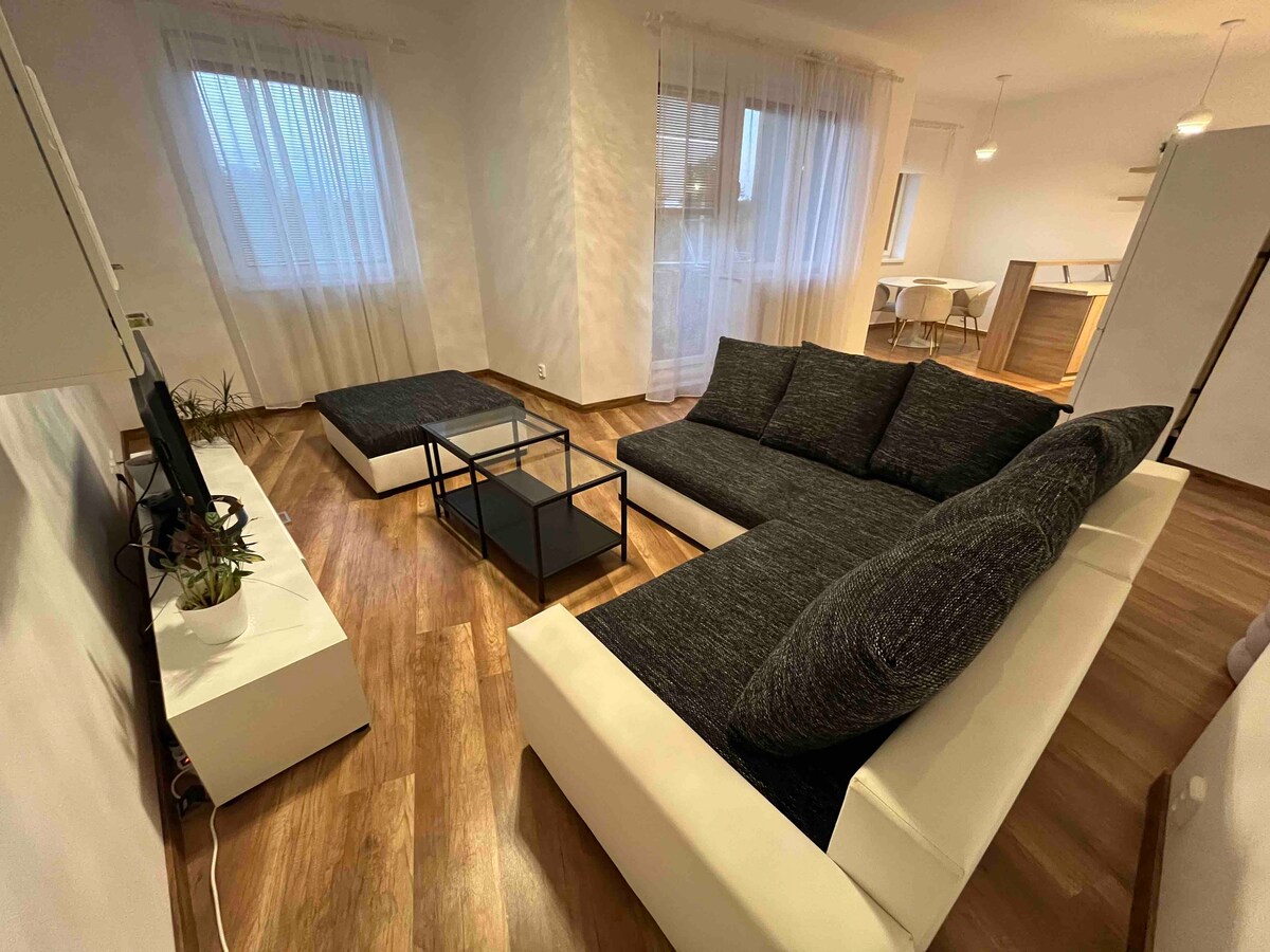 Opustite se u ovom jedinstvenom i mirnom mjestu u blizini šumskog parka s odličnim pristupom centru grada. Stan se nalazi na trećem spratu stambene zgrade - nove zgrade s liftom i besplatnim parkingom u garaži. Potpuno je opremljen, s vanjskim roletnama i klima-uređajem. S terase se pruža prekrasan pogled na park i Bratislavu. Dostupnost smještaja do centra je vrlo dobra, 7 minuta do autobuske stanice s mogućnošću više veza ili taksijem za 5 minuta. U njemu ćete se osjećati kao kod kuće.