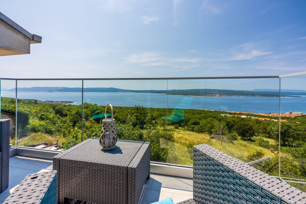 Moderan, novouređeni stan u porodičnoj kući s besplatnim parking mjestom. Nalazimo se u mirnom dijelu Crikvenice gdje možete uživati u prekrasnom pogledu na more. Savršen izbor za duži boravak na Kvarneru.