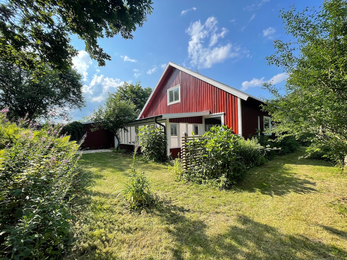 The small cottage is located all by itself on a small farm. The horses and sheep graze directly behind the house, and you can enjoy this idyllic setting from the terrace and deck chairs in the garden. The animals are all tame and love to be petted :-). Please note: the sleeping loft is accessed via a ladder! A place to relax and enjoy Swedish nature You clean the house yourself on departure or book a final cleaning in advance.