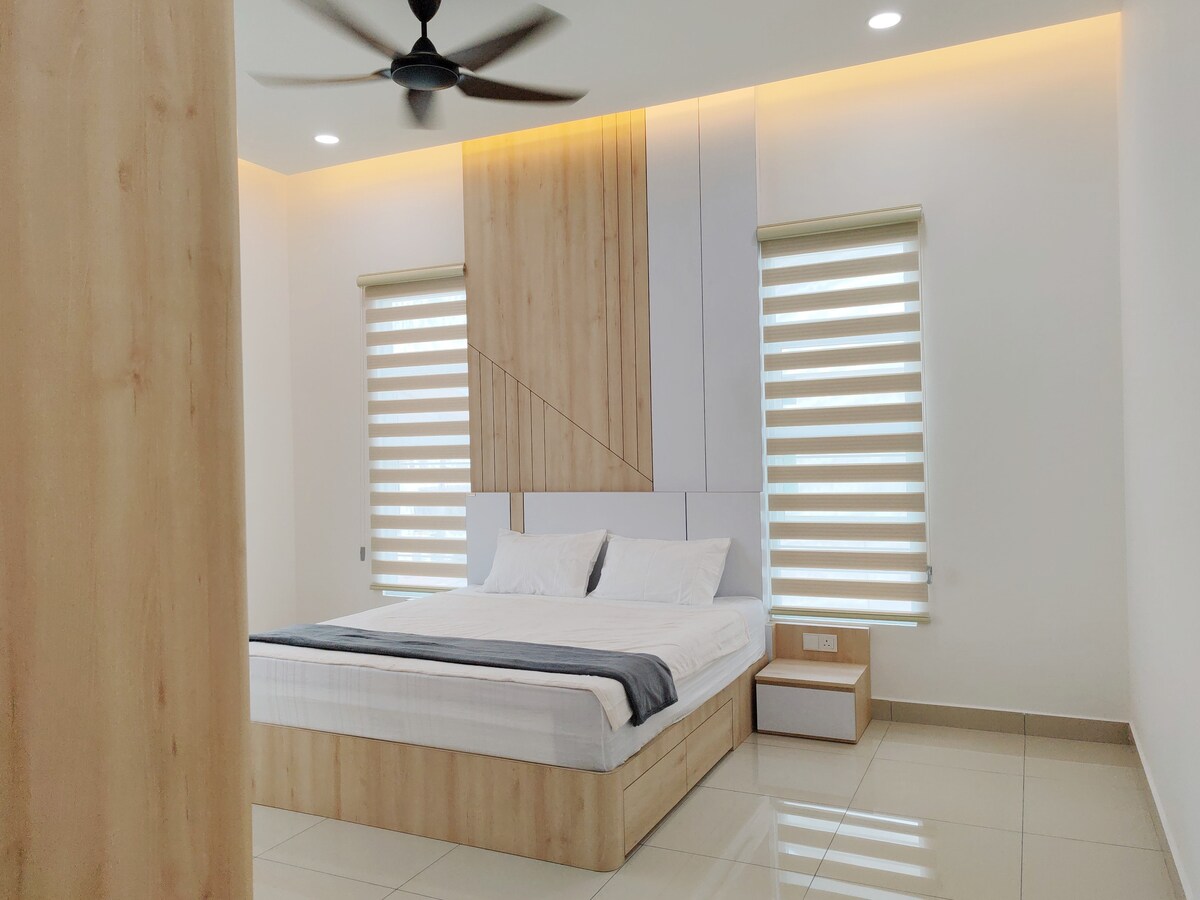 Odsjednite u našem prostranom poluprostoru u ograđenom prostoru Bandar Baru Sri Klebang. Savršen za porodice ili poslovna putovanja, ima 4 spavaće sobe, 4 kupatila i namjenske radne prostore. Uživajte u neograničenom Wi-Fi-u, klima-uređaju u svim sobama i ventilatorima. Potpuno opremljena kuhinja, mašina za pranje veša sa sušilicom i parking za 3 automobila. U blizini Aeon Klebanga i lokalnih restorana. Pristup cijelom smještaju, samostalni dolazak (15:00) i odlazak (11:00). Zabranjeno pušenje, kućni ljubimci, tišina od 23:00 do 19:00. Rezervišite sada za udobnost i praktičnost!