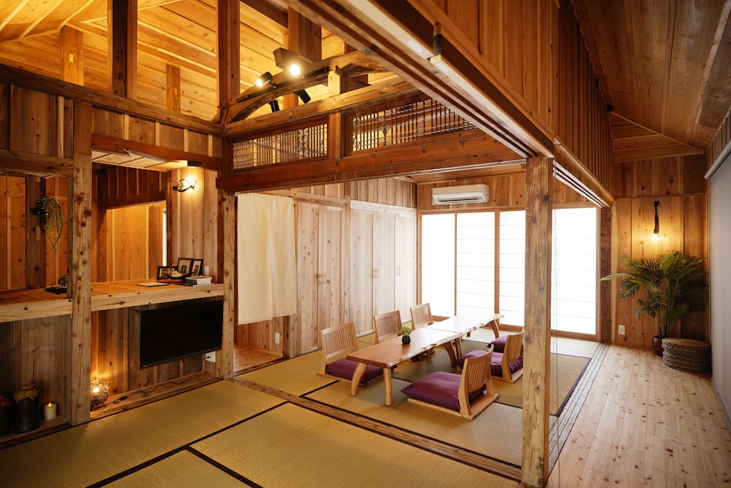 Također je u blizini trajektnih stanica do ostrva Kutaka, poznatog kao otok Bog, te otoka Seiba Otake i Komaka, gdje se ispred vas prostire prekrasan okean, a tu su i ručno pakirani kameni zidovi. Okolno područje je visoko i nisko, a strma brda i putevi su uski ispred kuće. To je mjesto gdje možete uživati u staromodnim selima koja nisu toliko razvijena. Postoji privatna plaža s velikom stijenom koja je udaljena samo 5 minuta hoda, a preporučuje se za šetnju. Preporučujemo vam da iznajmite automobil. Teško je naći taksi tog dana. Ako koristite autobus. U Nanjo Cityju postoji autobus, koristite ga.1 minuta hoda od najbliže autobuske stanice (Kumiyama).(Pretražujte po Nanjo City N Busu) Taksi i svaka rezervacija se traže sami. Privatni bazen je dostupan tokom cijele godine, ali nije grijan. Unaprijed se posavjetujte s nama o fotografisanju, komercijalnim ili poslovnim diskusijama. Pored nje je soba s kupatilom na otvorenom: airbnb.jp/h/kafuwa-b Na istoj stranici se nalazi [privatna dvospratna drvena kuća]: airbnb.jp/h/kafuwa-c