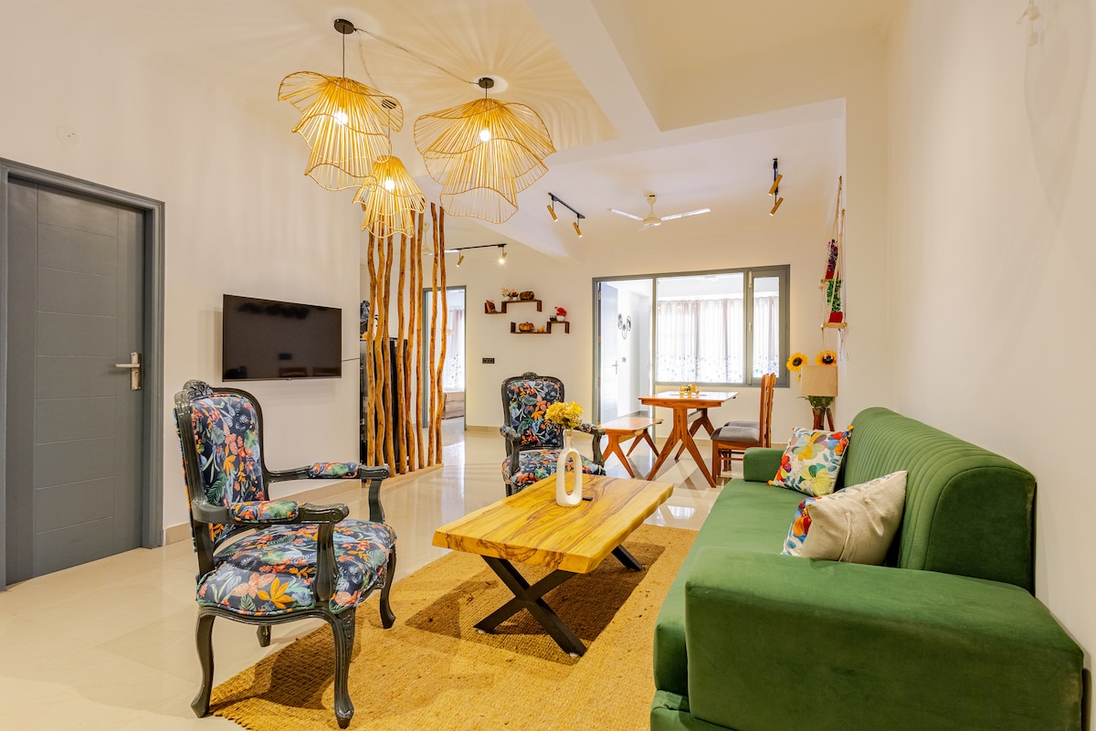 Escape to our Poppy Meadows Himachal, where comfort meets elegance in a boho-inspired setting. Relax in the spacious living areas, including a cozy sofa lounge and a dining area perfect for gatherings. Enjoy movie nights in the dedicated projector room with Himalayan views from the large balcony. Our home also features 3 modern bathrooms, a fully equipped kitchen, and private parking. Stay connected with free WiFi and unwind in a stylish, serene environment designed for ultimate relaxation.