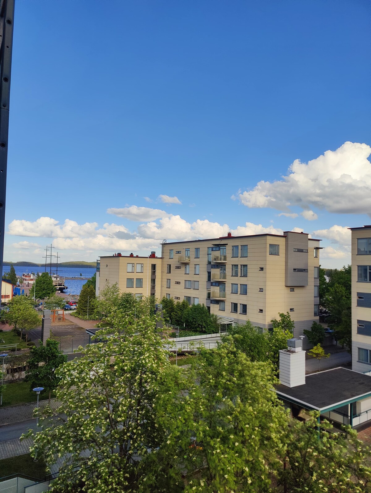 Novi, 2020. godine završen, svijetao mali dvosoban stan na 11. spratu tornja sa staklenim balkonom i prekrasnim pogledom na Puijo i Kallavesi. Stan ima rashladnu ventilaciju, novi namještaj i visokokvalitetnu opremu. Spavaća soba ima zavjese za zamračivanje. Stan se nalazi u tornju izgrađenom u sklopu novog putničkog centra. Autobusi i vozovi polaze pored. Sve usluge u centru grada udaljene su oko 5-15 minuta hoda. Za besplatan parking u susjednoj garaži potreban nam je registarski broj.