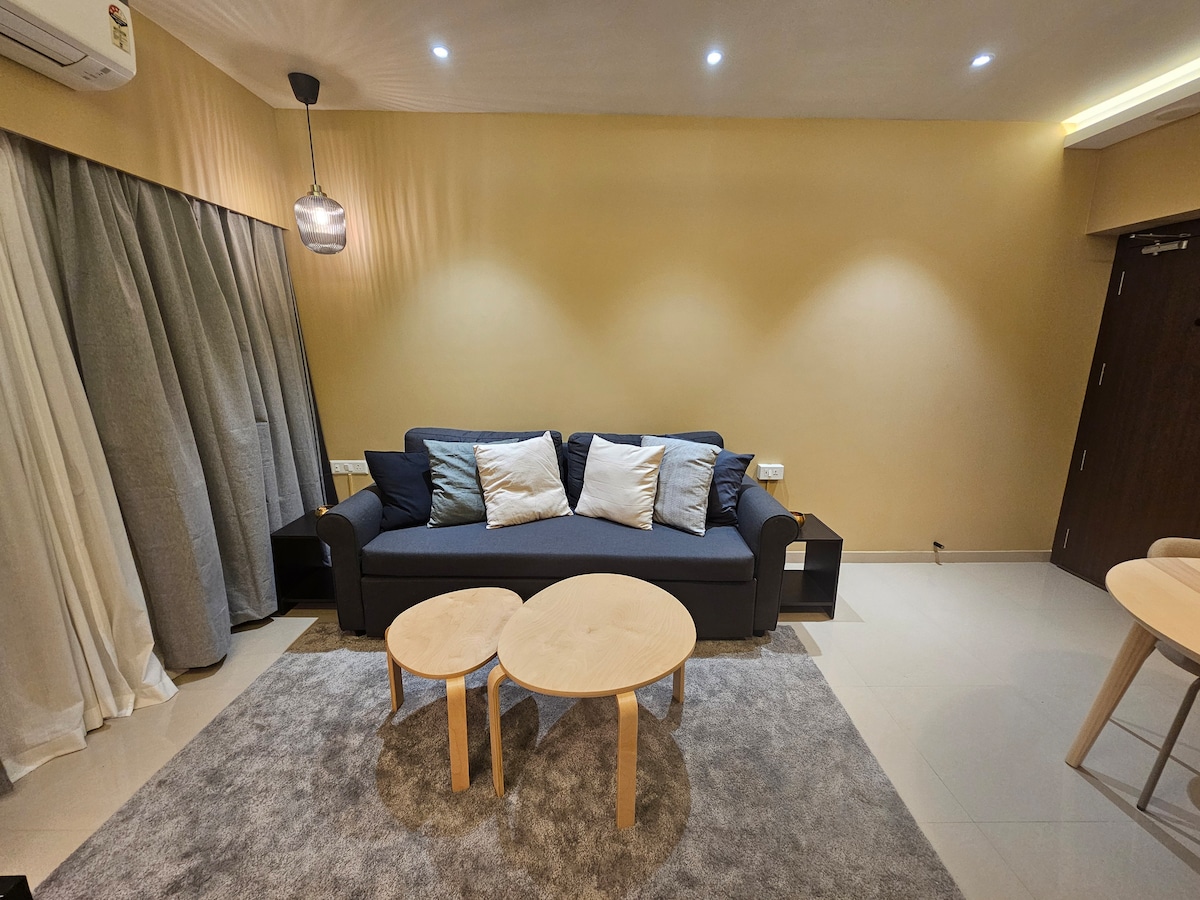 Dobro došli u Sanidhya, mirni 2BHK smješten u krilu planina Sahyadri, nedaleko od Panvela. - Šta će vam se svidjeti: - Mirni i udobni interijeri odabrani za opuštenu atmosferu - Prekrasan pogled na planine - Dvije prozračne, suncem obasjane spavaće sobe s mirnom atmosferom - Ukusno uređeni prostori, savršeni za opuštanje - Opremljena kuhinja kako biste se osjećali kao kod kuće - Okružena zelenilom, šetnje prirodom su na korak od vas - Idealno za rad na daljinu, samostalne odmore, boravke za parove ili miran porodični odmor